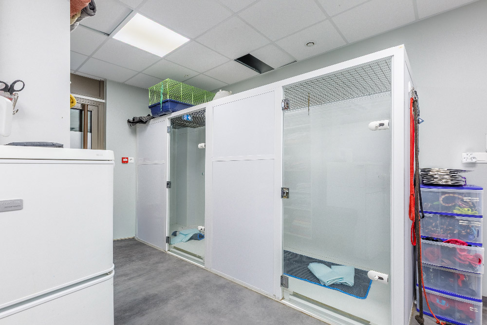 Notre service d’hospitalisation accueille les animaux nécessitant une surveillance rapprochée, des soins continus ou un suivi postopératoire sécurisé. Nos chenils et chatteries climatisés et chauffés, nos grands runs pour chiens, notre chatterie “Cat Friendly” et nos zones dédiées (contagieux, oxygénothérapie, couveuse) garantissent un environnement parfaitement adapté. Grâce à une présence humaine réelle 24h/24 et 7j/7, et à l’accès permanent au plateau technique (imagerie, laboratoire, transfusion), chaque patient bénéficie d’une prise en charge rigoureuse, d’une gestion optimale de la douleur et d’un accompagnement bienveillant.