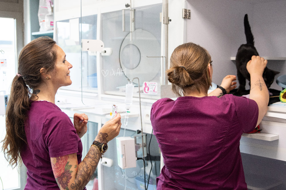 Notre équipe d’ASV et de vétérinaires est formée à la surveillance hospitalière, aux soins intensifs et à la gestion de la douleur. Chacun veille sur les patients avec attention, douceur et professionnalisme.